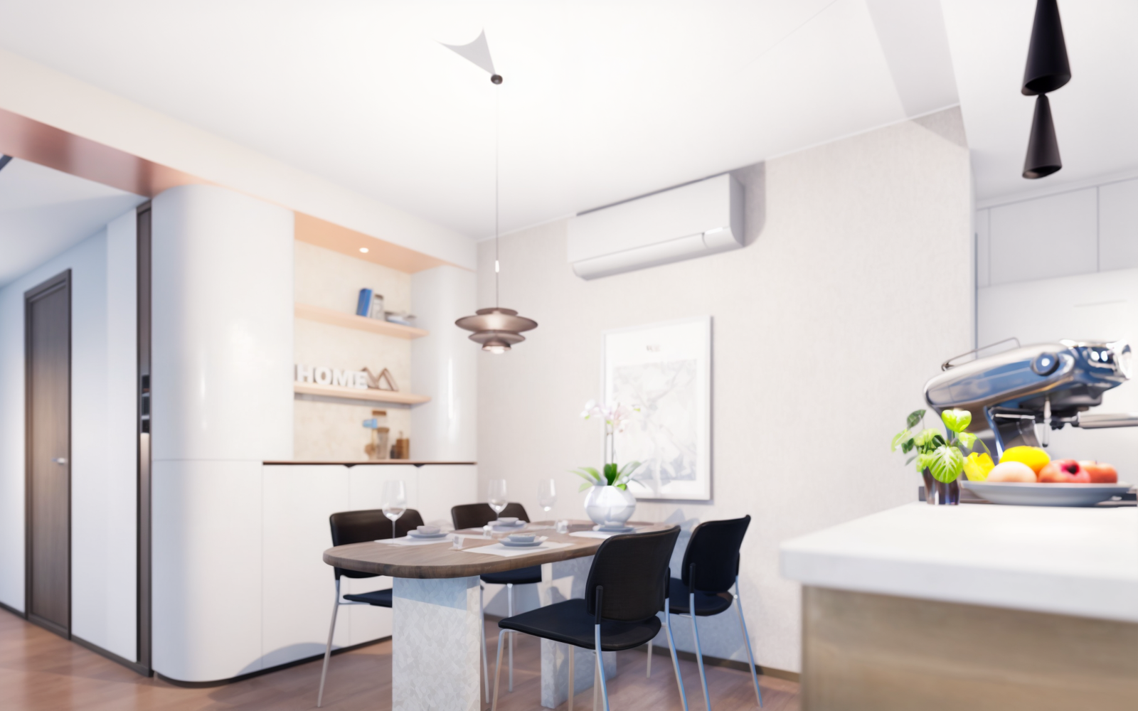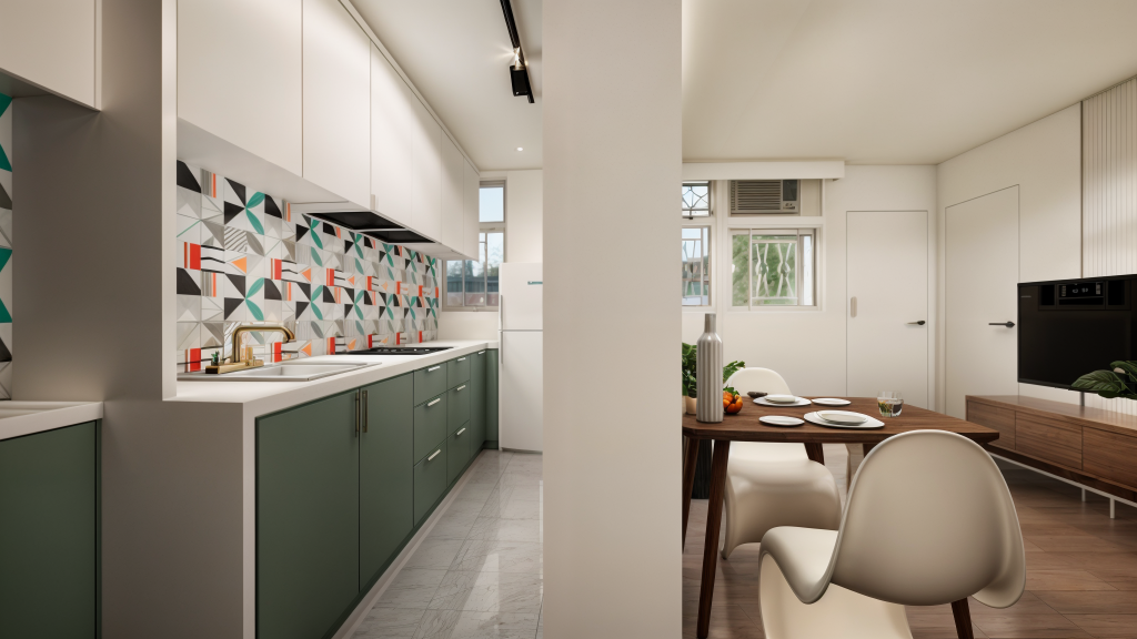 Interior renovation for a lovely retiring couple and a cat. The 849 sqf Pictorial Gardens apartment focuses on creating a ‘Zen’ atmosphere, using natural materials where possible. Soft curves are used where possible to blend the living and formal dining space. Featuring hints of circular elements in the Zen garden, lighting, and wall panels. A combination of LED ambient and task lighting is used to highlight the artwork around the house.